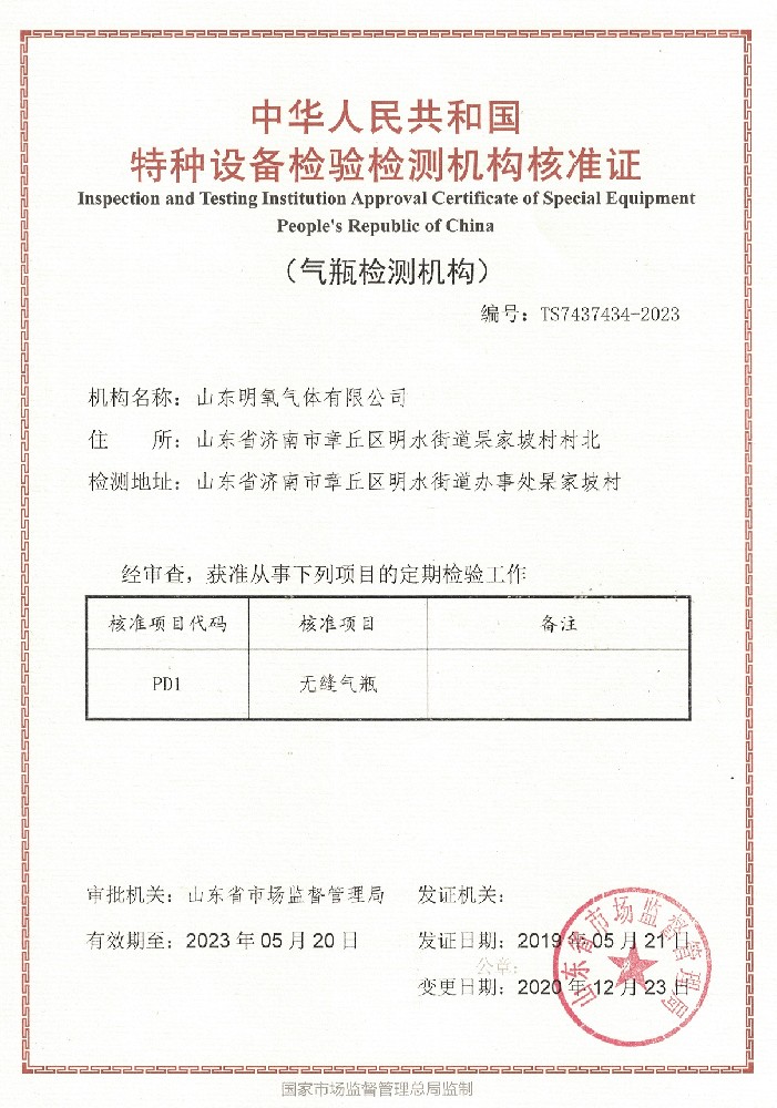 ??? 山東明氧氣體有限公司的前身為始建于1993年的章丘市明水氧氣廠,2020年12月企業(yè)由民營獨(dú)資轉(zhuǎn)型升級為山東明氧氣體有限公司,企業(yè)進(jìn)入新的發(fā)展階段。公司位于山東省濟(jì)南市章丘區(qū)明水街道杲家坡村村北,占地面積4000平方米,注冊資金500萬元,固定資產(chǎn)投資3000萬元,主要經(jīng)營項(xiàng)目為醫(yī)用氧氣、工業(yè)氧氣、氮?dú)狻⒏呒兊獨(dú)狻鍤狻⒏呒儦鍤狻⒏呒兒狻⒍趸肌⒒旌蠚怏w等各種工業(yè)氣體、高純氣體、混合氣體的充裝銷售、各類氣瓶的銷售、安全閥校驗(yàn)、鋼質(zhì)無縫氣瓶的檢驗(yàn)等。